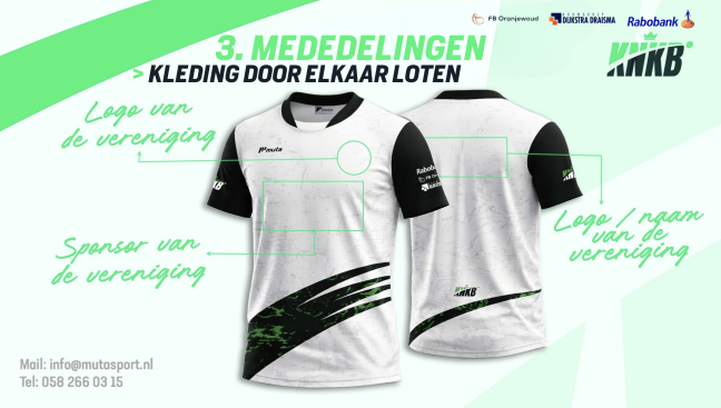 Zoals eerder vandaag op deze site gepubliceerd kunnen de door elkaar loten shirts weer besteld worden met eigen verenigingslogo.