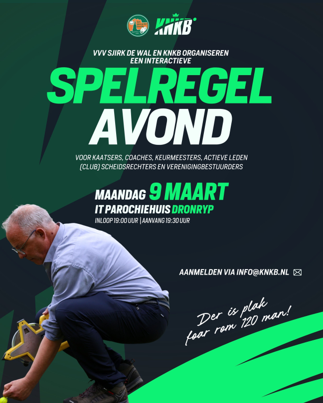 Samen met VVV Sjirk de Wal organiseert de KNKB op maandag 9 maart een interactieve spelregelavond in It Parochiehuis.